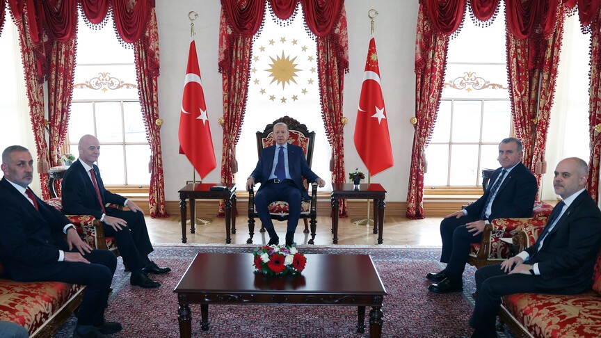استقبل الرئيس التركي رجب طيب أردوغان، رئيس الاتحاد الدولي لكرة القدم “فيفا” جياني إنفانتينو والوفد المرافق له.