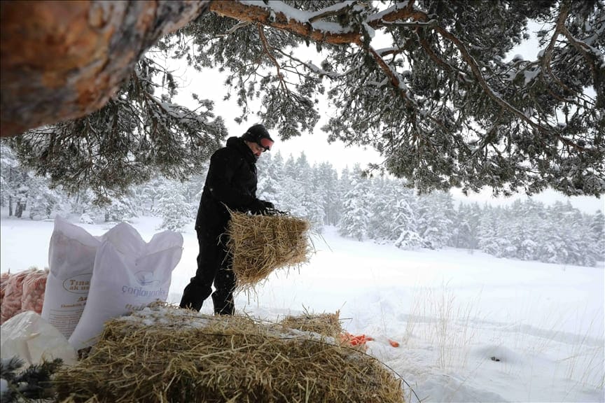 قامت وزارة الزراعة والغابات التركية بإحياء تقليد عثماني سنوي عبر إطعام الحيوانات في الغابات إنقاذاً لهم من الموت جوعاً وسط تراكم الثلوج وبرودة الطقس القارس.