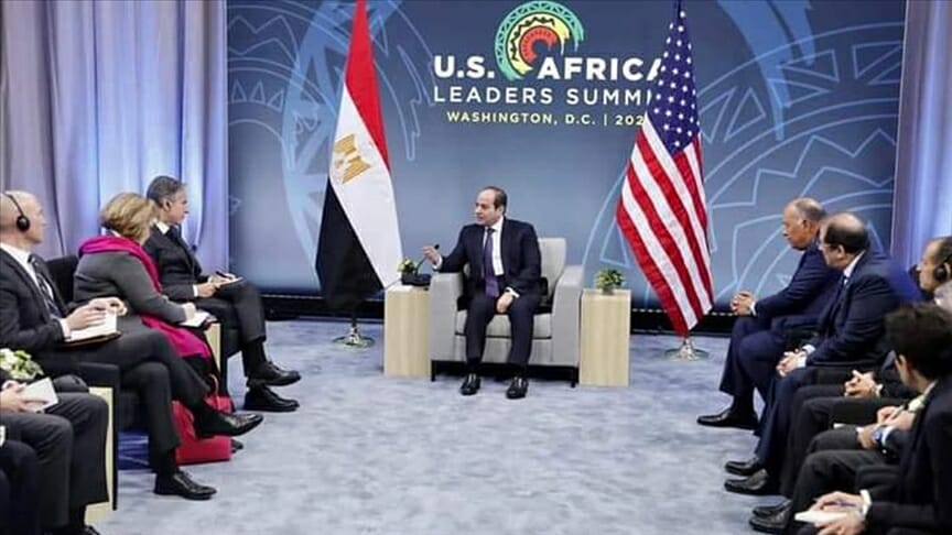 جاء ذلك خلال لقاءين منفصلين بين الرئيس المصري عبد الفتاح السيسي، ووزيري الدفاع والخارجية الأمريكيين أوستن لويد وأنتوني بليكن، على هامش مشاركته بالقمة الأمريكية الإفريقية، في واشنطن، بحسب بيانين منفصلين للرئاسة المصرية.