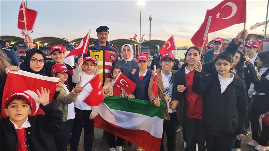 استقبلت الجالية التركية بالكويت بالورود فريق البحث والإنقاذ العائد إلى بلاده من منطقة الزلزال جنوبي تركيا.