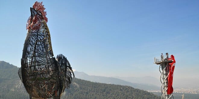 وفي كلمة خلال مراسم افتتاح شلال اصطناعي في إطار أعمال تطوير “حديقة الشعب” في المنطقة، قال رئيس بلدية باموق قلعة، حسين غورلرسين، إن مجسم الديك يتربع على قاعدة ارتفاعها 11 مترا، فيما يصل ارتفاعه 16 مترا، لصبح المجموع 27 مترا.