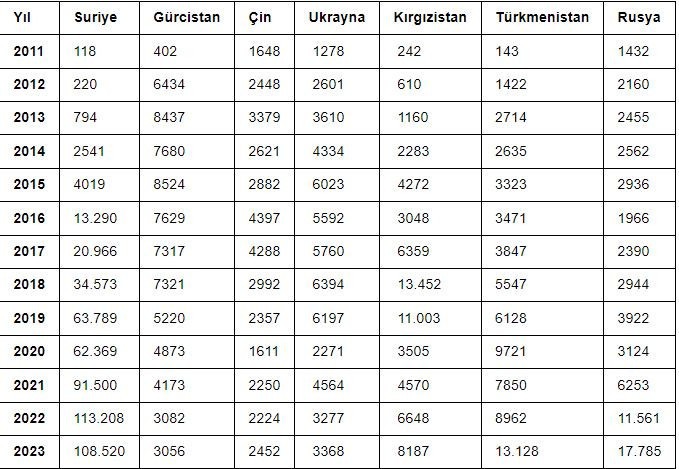 ووفق بيانات الوزارة، فقد حصل إجمالي 239 ألفًا و835 أجنبيًا على تصاريح عمل في تركيا في عام 2023. وتصدر السوريون القائمة بعدد بلغ 108 آلاف و250 شخصًا، بعد أن كان عدد الحاصلين على إذن العمل من السوريين بعد اندلاع الحرب في عام 2011، لا يتجاوز الـ118 شخصًا فقط.