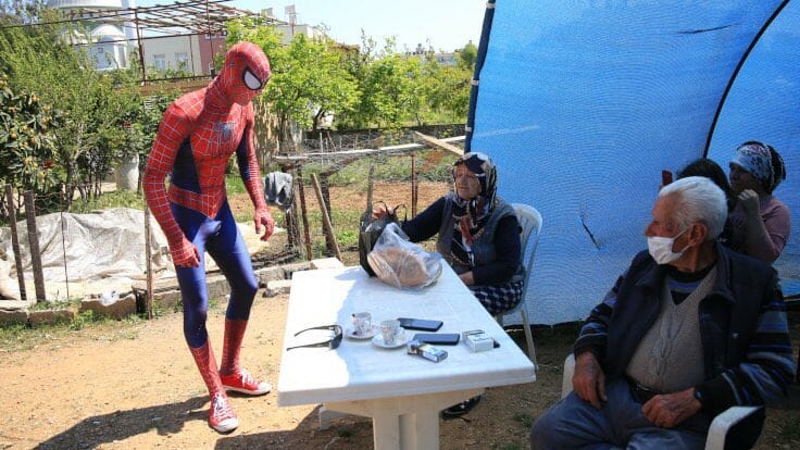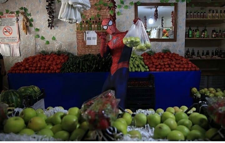 بزيّ “الرجل العنكبوت”، كما في فيلم “سبايدرمان” الشهير، يسرع المواطن التركي براق صويلو، إلى تلبية احتياجات المسنين غير القادرين على الخروج من منازلهم، في ظل قيود فيروس كورونا، وتوصيل متطلباتهم إلى بيوتهم، حتى بات “بطلا” في نظر المسنين.