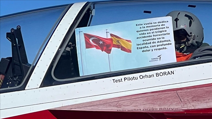 وجاء في بيان نشرته شركة صناعات الطيران والفضاء التركية “توساش” المصنِّعة للطائرة: “هذا التحليق نهديه باحترام إلى ذكرى ضحايا حادث القطار الأليم في بلدة أداموز الإسبانية. نشارك آلام ذوي الضحايا ونتقدم بتعازينا إلى الشعب الإسباني”.