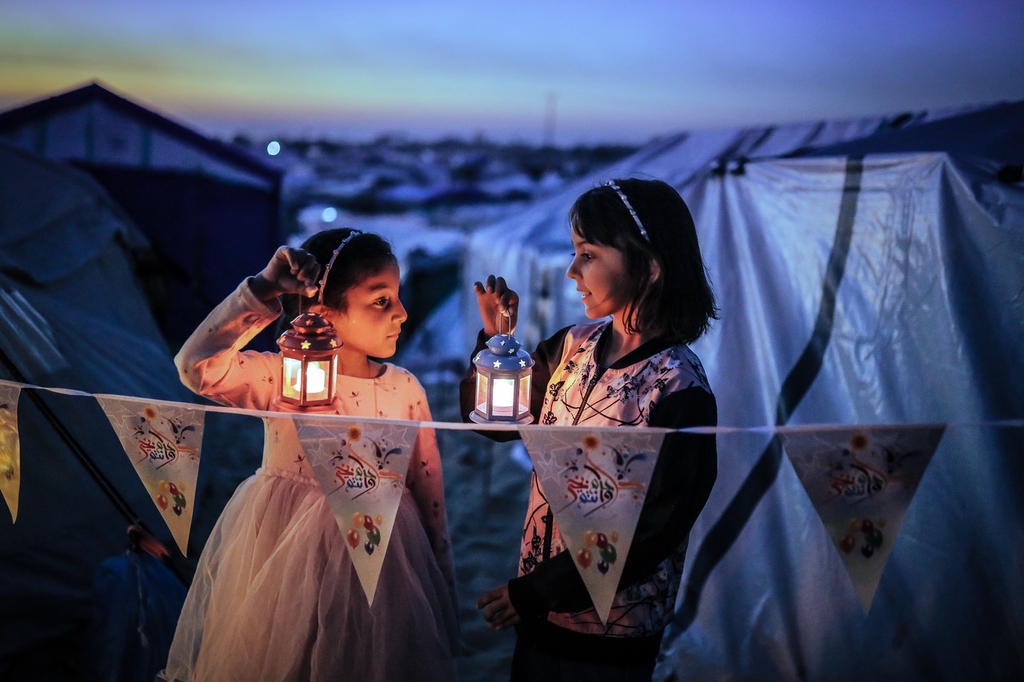 وفيما يلهون الأطفال الصغار خارج الخيمة، يشعلون فوانيس رمضان ويغنون أناشيد رمضانية، مما يملأ الجو بالبهجة والأمل، وسط صوت الطائرات الحربية التي تنادي الرعب في قلوبهم الصغيرة.