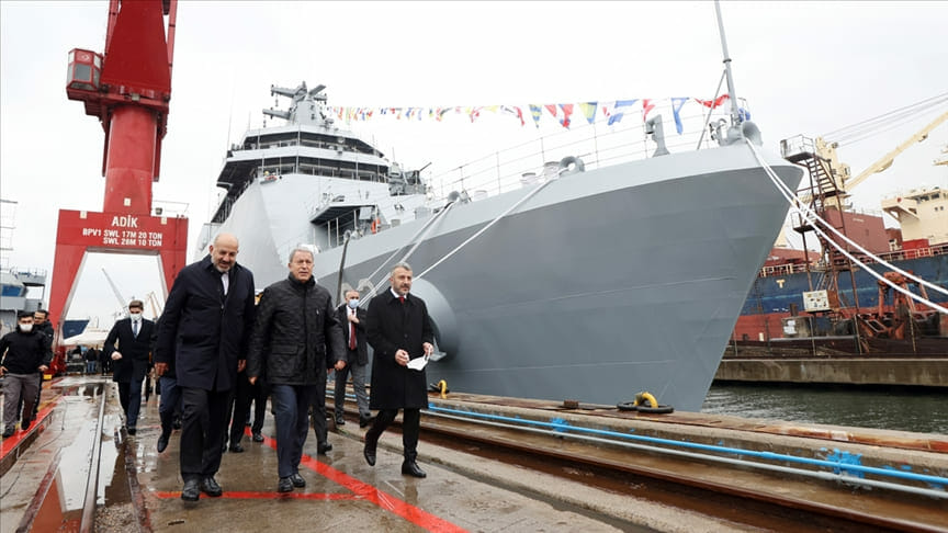 وبدأت مراسم حفل التسليم التي أقيمت بميناء الأناضول المخصص لبناء السفن في إسطنبول، بعزف نشيد الوطني لكل من البلدين، وقراءة آيات من القرآن الكريم.